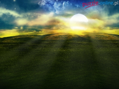 Puzzle Chmury, Łąka, Zachód Słońca