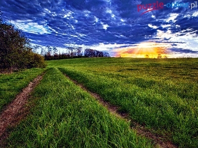 Puzzle Chmury, Łąka, Zachód Słońca
