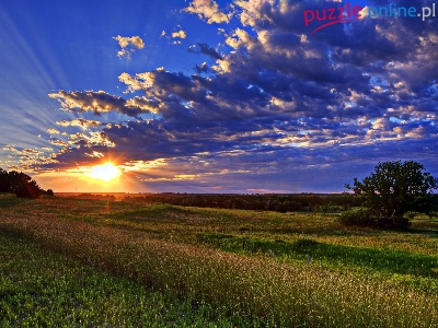 Puzzle Chmury, Pole, Niebo, Zachód Słońca