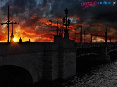 Puzzle Chmury, Most, Rzeka, Zachód Słońca