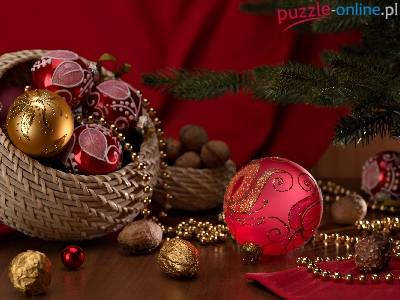 Puzzle Choinka, Koszyk, Bombki, Święta