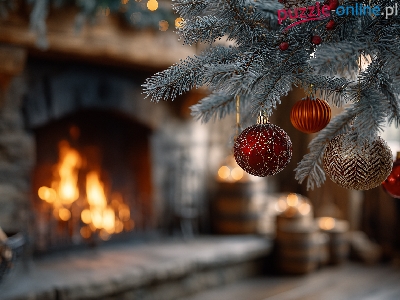 Boże Narodzenie, Bombki, Choinka, Grafika AI, Kominek