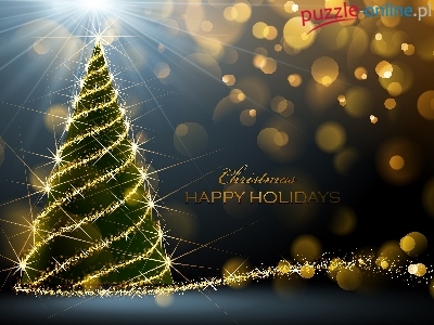 Puzzle Życzenia, Boże Narodzenie, Choinka, Światełka
