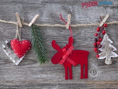 Zawieszki, ÅšwiÄ…teczna, Deski, Renifer, Serca, Klamerki, Dekoracja, Sznurek, Choinka