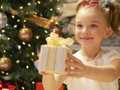 Puzzle ÅšwiÄ…teczny, Dziewczynka, Choinka, Prezent
