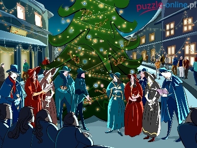 Puzzle Choinka, Boże, Narodzenie, Kolędnicy