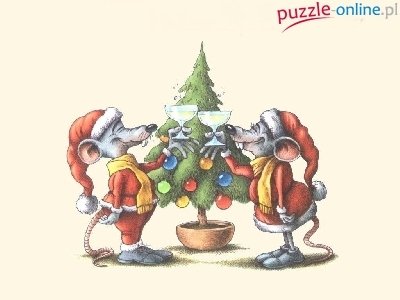 Puzzle choinka , Boże Narodzenie, myszy
