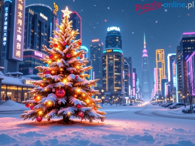 Miasto, Zima, Wieżowce, Choinka, Boże Narodzenie