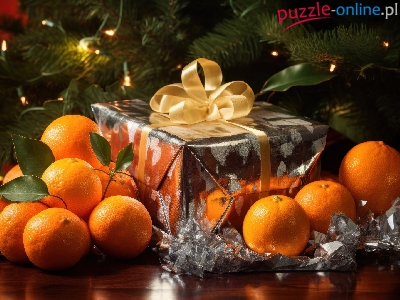 Puzzle Choinka, Prezent, Pomarańcze