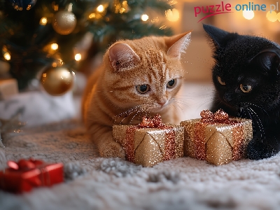 Puzzle Prezenty, Dwa, Koty, Choinka