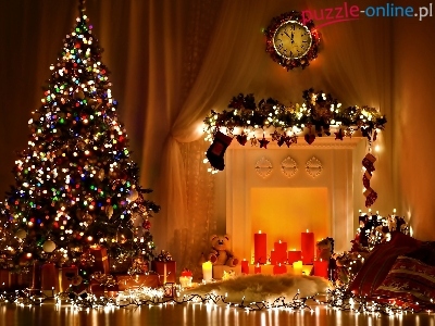 Choinka, Dekoracja, Boże Narodzenie, Wnętrze, Zegar