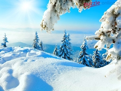 Puzzle Choinki, Zima, Åšnieg, Niebo