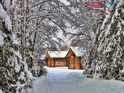 Puzzle Choinki, Domki, Ośnieżone, Zima