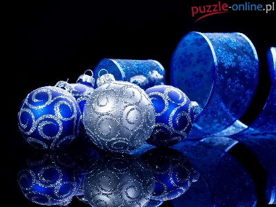 Puzzle Choinkowe, Niebieskie, Bombki, Odbicie