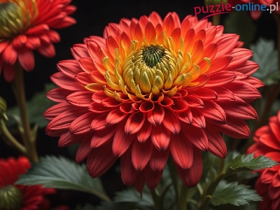 Kwiaty, Chryzantema, Czerwona, Chryzantema, Listki Kwiat