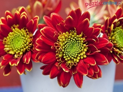 Chryzantemy, Wazon, Czerwono, Żółte, Biały