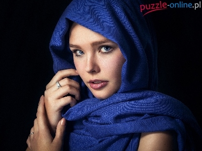 Puzzle Chusta, Kobieta, Niebieska, Makijaż