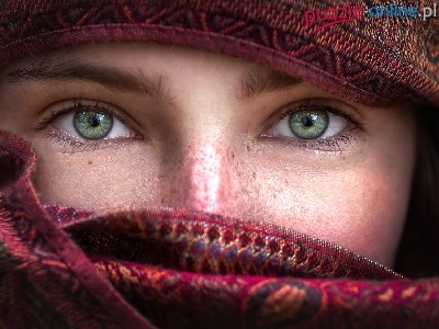 Marion Desmarchelier, Zielono-Szare, Piegi, Oczy, Kobieta, Twarz, Chusta