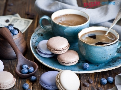 Ciasteczka, Borówki, Kawa, Filiżanki, Makaroniki