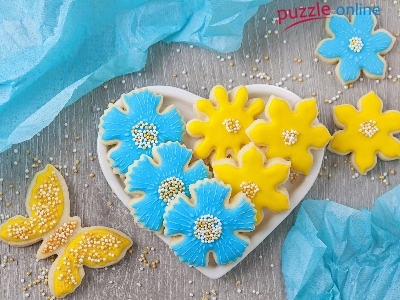 Ciasteczka, Blat, Żółte, Niebieskie, Talerzyk