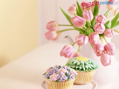 Ciasto, Babeczki, Kwiaty, Tulipany, Dwie