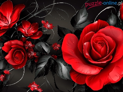 Czerwone, Ciemne, Róże, 2D, Tło