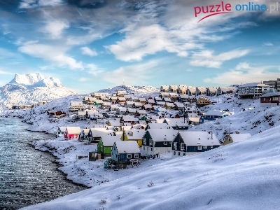 Zima, Cieśnina Davisa, Góry, Grenlandia, Miasto Nuuk, Domy