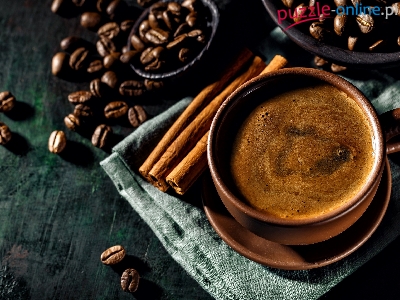Filiżanka, Ziarna, Kawa, Cynamon, Spodek, Brązowa