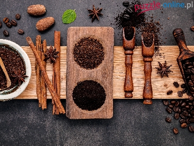 Deski, Listek, Łopatki, Anyż, Migdały, Miska, Kawa, Cynamon