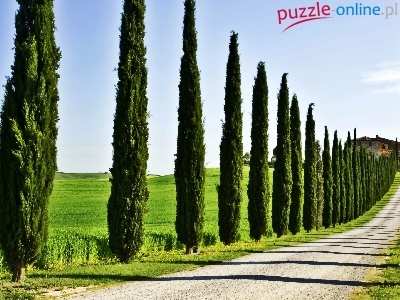 Puzzle Łąka, Droga, Cyprysy, Dom