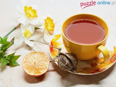 Puzzle Cytryna, Filiżanka, Herbaty, Narcyzy