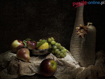 Owoce, Cytryna, Wazony, Gruszki, Kompozycja, Jabłka, Winogrona