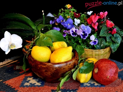 Puzzle Cytryny, Doniczka, Kwiaty, Granat