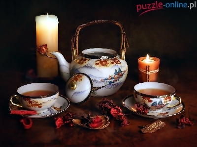 Czajniczek, Herbata, Kompozycja, Filiżanki, Świece
