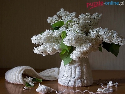 Puzzle Czapka, Biały, Bez, Szalik