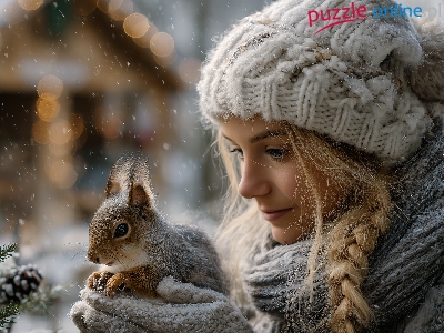 Wiewiórka, Warkocz, Kobieta, Czapka, Grafika AI, Szal