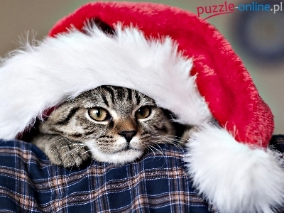 Puzzle Czapka, Boże Narodzenie, Kot, Mikołaja
