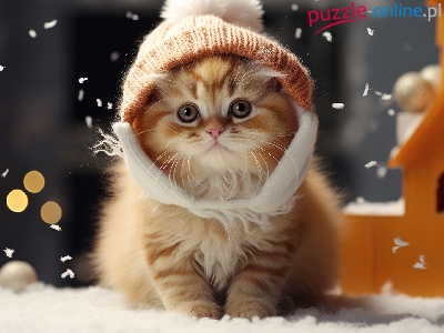 Kot, Czapka, Kotek, Śnieg, Domek