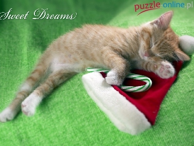 Puzzle Czapka, Śpiący, Kotek, Mikołaja