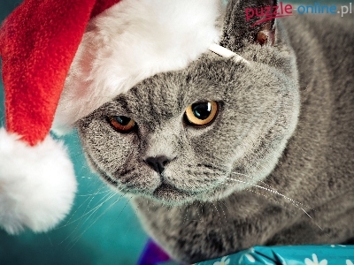 Puzzle Czapka, Kot brytyjski krótkowłosy, Mikołaja
