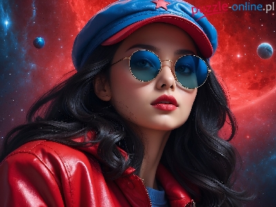 Dziewczyna, Czapka, Niebieska, Grafika, Okulary