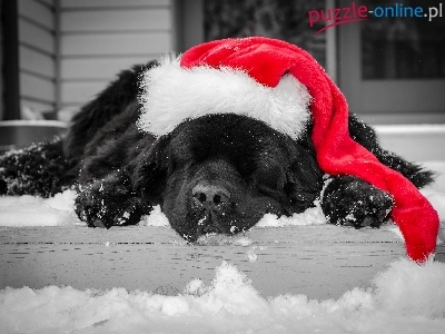 Puzzle Czapka, Śpiący, Piesek, Mikołaja