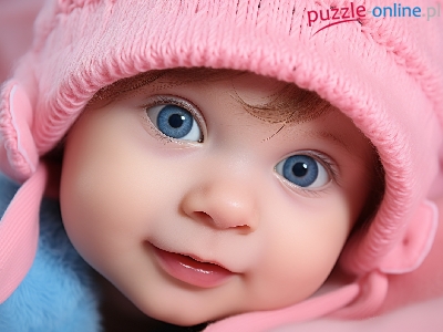 Dziecko, Czapka, Różowa, Oczy, Niebieskie