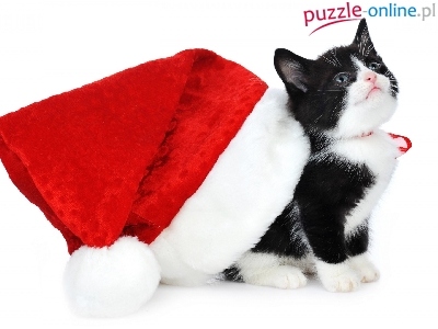 Puzzle Czapka, Kot, Słodkie, Mikołaja