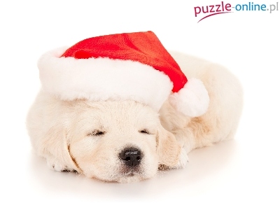 Puzzle Czapka, Szczeniaczek, Golden retriever, Mikołaja