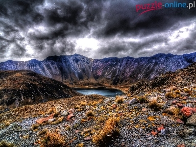 Puzzle Czarne, Góry, Jezioro, Chmury