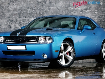 Puzzle Czarne, Dodge Chalenger, Niebieski, Paski