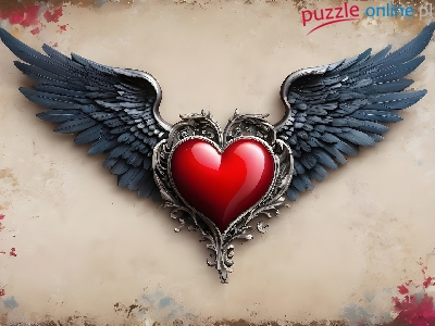 Czerwone, Czarne, Serce, Ściana, Skrzydła