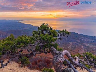 Wschód słońca, Sosna, Góry Krymskie, Krym, Morze Czarne