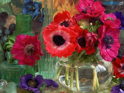Czarne, Anemony, Dekoracja, Czerwone, Wazon, Winogrono